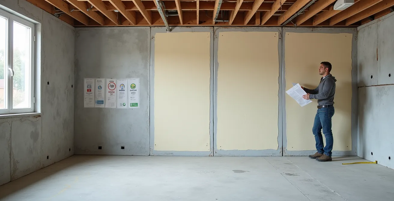 L’erreur la plus commune est de vouloir créer un espace d’air entre le mur de maçonnerie et l’isolant, ou de coller un isolant rigide imperméable comme le polystyrène directement sur le mur. Ces deux approches sont problématiques. L’espace d’air permet à l’air chaud et humide de l’intérieur de circuler et de condenser sur le mur de fondation froid, créant de la moisissure cachée. Coller un pare-vapeur efficace directement sur le mur emprisonne l’humidité à l’intérieur de la maçonnerie, l’exposant à une dégradation accélérée par les cycles de gel et de dégel. Comme le souligne le groupe d’experts Écohabitation :